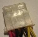 Ключом разъёма служат скошенные углы с одной из сторон. Провода подключены следующим образом: два центральных - "земля", общий контакт (чёрный провод); +5 В - красный, +12 В - жёлтый. Для питания вентилятора через молекс-разъём используются только два провода, обычно чёрный ("земля") и красный (напряжение питания). Подключая их к разным контактам разъёма, можно получить различную скорость вращения вентилятора. Стандартное напряжение в 12 В запустит вентилятор со штатной скоростью, напряжение в 5-7 В обеспечивает примерно половинную скорость вращения.