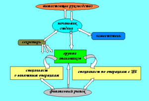 Предварительно все операции должны быть согласованы с начальником отдела или его заместителем, которые дают свое согласие на их проведение и контролируют работу всех сотрудников по проведению всех операций. Кроме того, начальник отдела осуществляет взаимодействие с вышестоящим руководством и следит за формированием и представлением необходимой отчетности, наиболее эффективно организует и управляет работой всего отдела.
