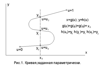 Хотя выгода от использования параметрического задания налицо‚ оно имеет и свои недостатки. Возвращаясь к приведённому выше примеру‚ первый недостаток заключается в следующем: чтобы оценить местоположение точки‚ лежащей на линии ‚в пространстве нужно использовать два уравнения‚ а не одно‚ как в случае явного задания прямой. Поэтому в вычислительном отношении параметрическое задание сложнее. Второе‚ мы часто хотим вычислить у по данному х или х по данному у и ничего не знать про параметр u. При параметрическом задании сперва вычисляется u по заданному х‚ а потом уже у. Это не всегда является кратчайшим путём.