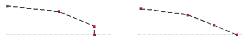 Известно, что NURBS кривая при подходе к своим конечным точкам приближается к касательной, проведённой в этих точках. Представим плазовщика, изображающего окончания ватерлиний гибкой рейкой. Если плазовщик расставит точки по рейке так, что последняя точка окажется на самой кромке ватерлинии, а рейка может принимать любую форму, то получится визуализированное конечное условие натурального сплайна(см. рис.3.11). Однако часто случается, что окончания ватерлиний проходят перпендикулярно диаметральной плоскости, например, эллиптические окончания ватерлиний. Плазовщик будет вынужден чрезмерно изогнуть линейку или воспользоваться корабельным лекалом. Пользуясь В-сплайном данная проблема легко решается, установив наклонную определяющего многоугольника перпендикулярно диаметральной плоскости. Это называется зеркальным граничным условием. Отсюда видно, насколько однозначно В-сплайн определяет такое конечное условие.