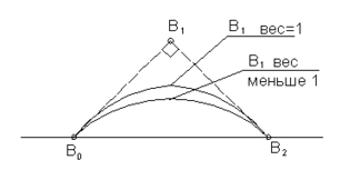 До сих пор мы рассмотрели все части, которые составляют аббревиатуру NURBS за исключением одного “рациональность”. В-сплайн является рациональным, если каждой вершине его определяющего многоугольника соответствует своё значение веса точки. Вес точки можно рассматривать как силу влияния данной точки на кривую. Рассмотрим рис.3.9.