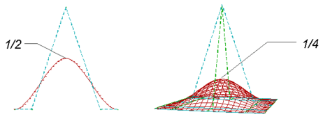 В общем случае поверхность повторяет форму определяющей контрольной сети. Фактически, контрольную сеть можно рассматривать, как увеличенное изображение поверхности. Т.о. если мы имеем перегибы в определяющей сети, то в поверхности тоже будут перегибы. Забегая вперёд, если мы хотим получить гладкую поверхность, то мы должны иметь гладкую сеть.