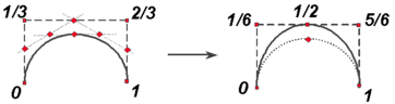 В-сплайн поверхность совпадает с вершинами определяющей сети в конечных точках поверхности; кроме того, поверхность, подходя к конечным точкам, приближается к касательным, восстановленным в конечных точках. Чтобы точно изобразить круглые или конические поверхности необходимо назначить вершине вес. Это можно сделать и по-другому, а именно, добавляя строки и столбцы вершин сети.