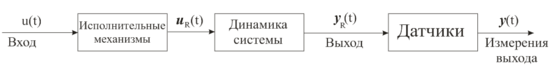 Как было отмечено ранее, мы будем рассматривать диагностику отказов для модели системы без обратной связи. В целях моделирования система без обратной связи может быть разделена на три части: исполнительные механизмы, динамика системы и датчики (рисунок 2.4).