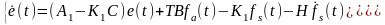 где fa – отказы исполнительных механизмов, fs - отказы датчиков. Для формирования надежного рассогласования (в смысле отделения возмущений) необходимо проектирование наблюдателя описываемого формулой (2.52). Если известна оценка состояния, то рассогласование может быть сформировано следующим образом: