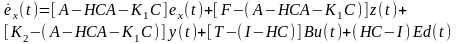 - вектор состояния этого наблюдателя полного порядка, F, T, K, H – матрицы, которые необходимо спроектировать для выполнения отделения неизвестного входа и других требований проектирования. Наблюдатель, описываемый уравнениями (2.52) представлен на рисунке 2.18.
