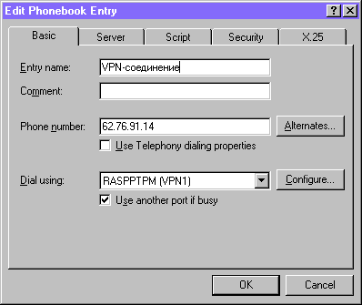 Однако если использовать PPTP для соединения с другим компьютером по локальной сети, необходимо иметь только одну запись в телефонной книге.