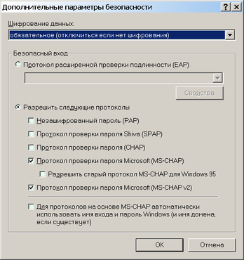 Протокол расширенной проверки подлинности. Здесь имеется список методов проверки подлинности, доступных на компьютере.
