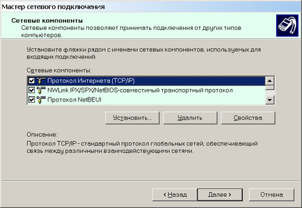 Теперь выбираем используемые сетевые компоненты для подключения: