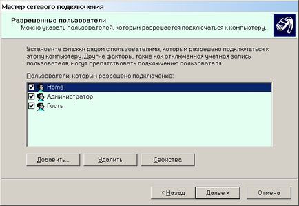 Здесь мы выбираем пользователей, которые смогут подключаться к компьютеру:
