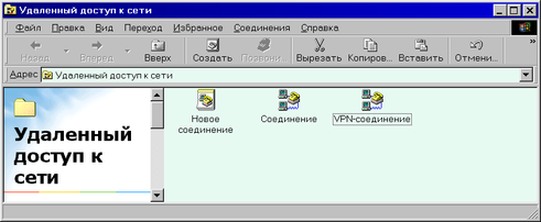 В папке «Удаленный доступ к сети» появляется значок с названием соединения: