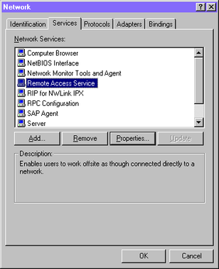 Наводим курсор на Remote Access Service и нажимаем Properties.