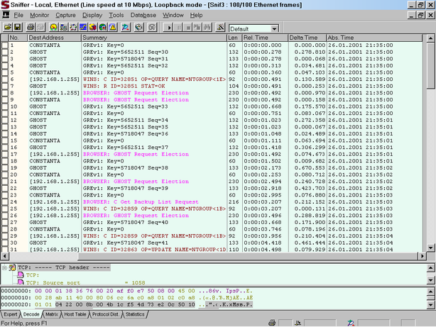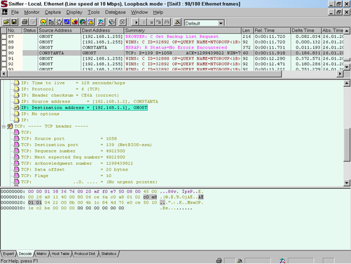 14 Использование программы Sniffer Pro для просмотра содержимого пакетов