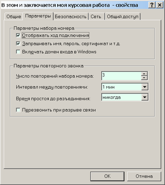 Закладка «Параметры». Здесь указываются Параметры набора номера и Параметры повторного звонка: