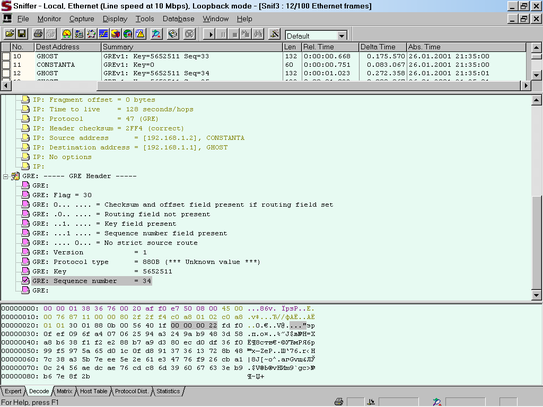 Посмотрим содержимое пакетов переданных с помощью протокола GRE.