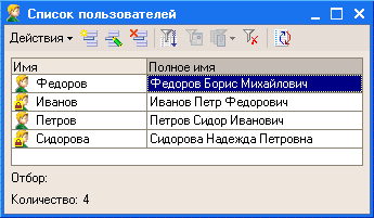 Система 1С:Предприятие позволяет вести список пользователей, которым разрешена работа с системой. Этот список не является частью прикладного решения, а создается отдельно в конкретной организации, в которой используется система: