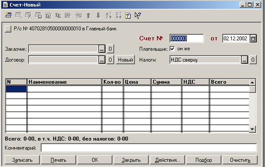 Рассмотрим часть модуля документа «Счет» в программе «1С: Бухгалтерия»