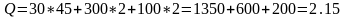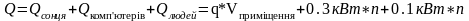 Тому що вікно у кімнаті виходить на північ (величина q становить 30 Вт/м. куб.), то загальна величина тепло приплива буде обчислюватися: