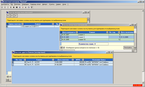 Вгорі ми бачимо меню, під яким знаходиться панель керування таблицями. Вона є загальної для всіх реєстрів, і працює з таблицею, яка знаходиться в активному стані. Одночасно ми маємо можливість відкрити реєстри різних типів (платежів, контрактів, підтверджуючих документів та інше) що спрошує роботу в системі (рисунок 5.2).