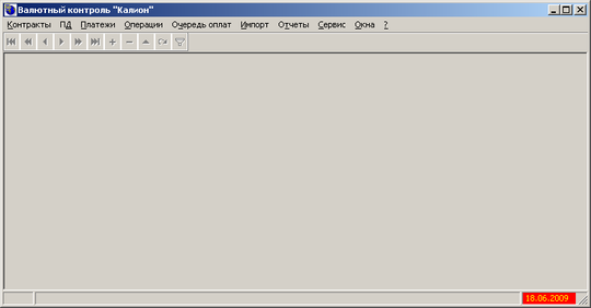 Після запуску системи користувач повинен пройти авторизацію в системі. При тестуванні використовувався користувач з назвою «odadm» з однойменним паролем. При успішній авторизації користувач потрапляє до головного вікна системи «Валютний контроль» (рисунок 5.1):