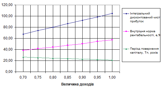 Рисунок 6.1 – Вплив зміни доходів на критерії ефективності