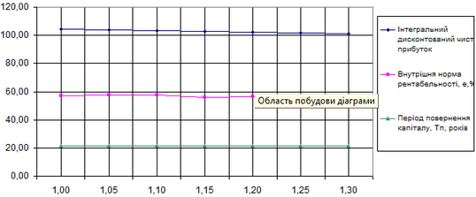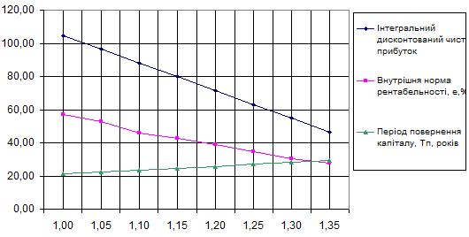 Рисунок 6.3 – Вплив зміни капіталовкладень на критерії ефективності