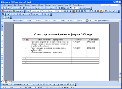 Приложение 7. Пример отчета по проделанным работам за месяц