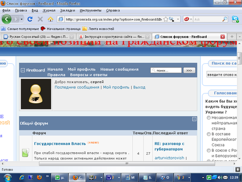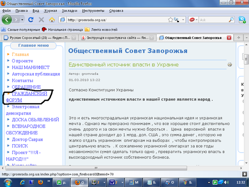Для цього на головній сторінці http://gromrada.org.ua/ у головному меню виберіть та натисніть ГРАЖДАНСКИЙ ФОРУМ.