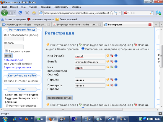 Реєстрація на сайті