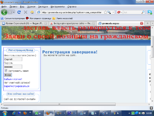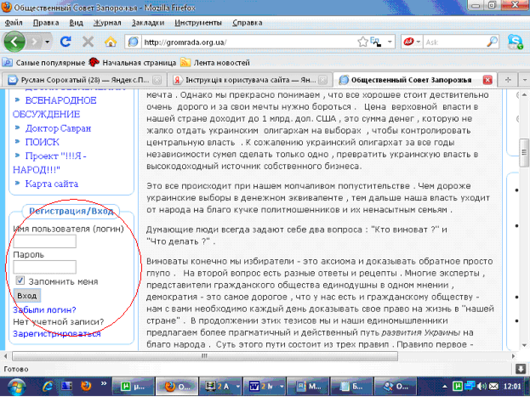 При наступних відвідуваннях сайту перед початком роботи Вам необхідно буде авторизуватися, в системі.