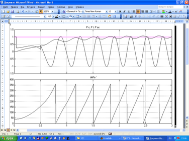 В п. 1.2 и 1.3 получить осциллограммы мощности турбины, синхронной мощности, асинхронной мощности и угла