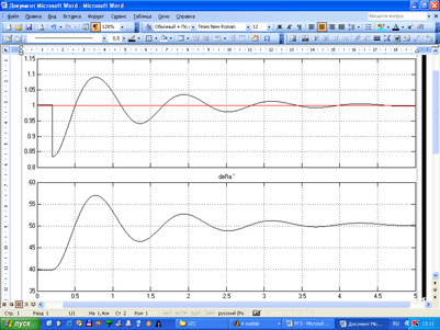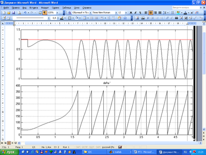 При заданных условиях модель динамически устойчива. При t = 5 с система возвращается к нормальному режиму работы.