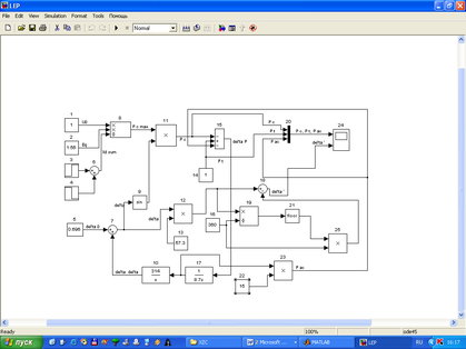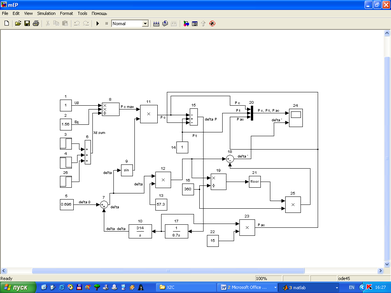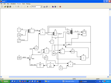 Простейшая компьютерная модель турбоагрегата была получена путем реализации системы уравнения (1):
