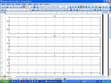 2.Создать компьютерную модель СГ в координатах d, q, 0 и получить осциллограммы токов в обмотках статора и ротора и напряжения в обмотках статора в режиме ХХ.