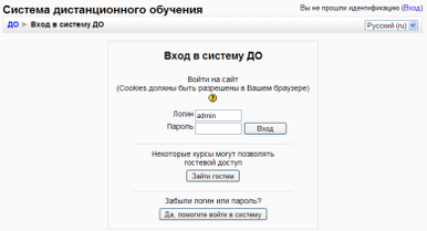 Рисунок 2.3 – Вход в систему дистанционного обучения
