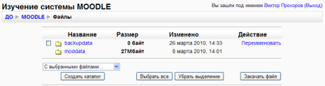 Для каждого курса система Moodle создает отдельный каталог, в который можно загружать файлы, сохранять созданные в системе ресурсы курса (текстовые и -страницы) и т.д.