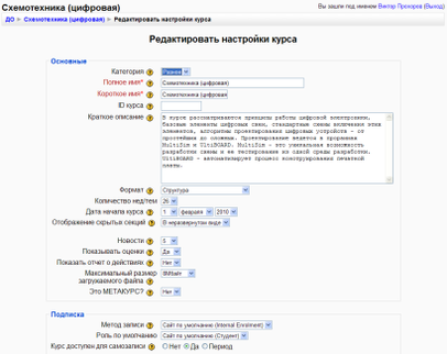Полное имя курса — название курса, которое будет отображаться в перечне курсов. Нашему курсу дадим полное имя, например, Схемотехника (цифровая).