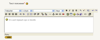 Пояснение — позволяет помещать текст и графику на главную страницу курса. С помощью такой надписи можно пояснить назначение какой-либо темы, недели или используемого инструмента.
