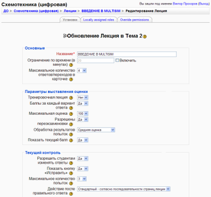 В открывшейся странице «Добавление лекции» нужно указать название лекции и при необходимости изменить настройки, выставленные по умолчанию.