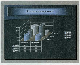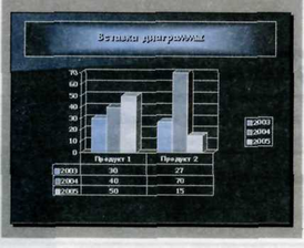 Клацання по інструментові "Таблица данных" приєднає до діаграми таблицю вихідних даних оформлену у стилі діаграми (мал.17.6).