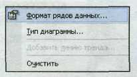 Для зміни кольору діаграми потрібно двічі клацнути по ній мишею, а потім одноразово по рядку колір якого необхідно змінити. В нашому прикладі клацаємо по рядку "2005", який відображається на діаграмі пісочним кольором. Після клацання ряд буде помічений маркерами. Клацнувши правою кнопкою миші по виділеному рядкові і у контекстному меню обрати пункт "Формат рядов данных" (мал.17.9).