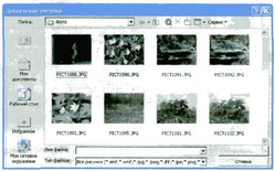 Також можна вставити до нашого слайду якийсь файл із зображенням. Для цього необхідно створити новий слайд із авторозміткою "Только заголовок" і обрати в меню "Вставка" пункт "Рисунок" - "Из файла". Відкриється вікно "Добавления рисунка" (мал.18.5). У рядку "Папка" цього вікна обрати папку, в якій зберігаються фотографії або малюнки. Нижче відобразяться всі графічні файли, що містяться в даній папці.