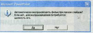 В цьому вікні потрібно вказати путь до відеофайлу та клацнути "ОК". Потім буде задано запитання про автоматичний запуск фільма при показі слайду (мал. 19.2).
