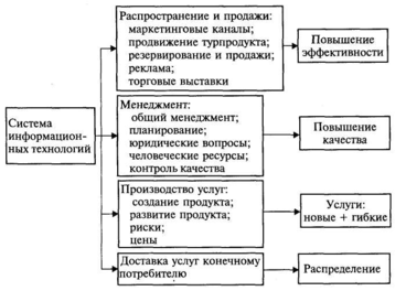 Современные компьютерные технологии активно внедряются в сферу туристского бизнеса, и их применение становится неотъемлемым условием повышения конкурентоспособности любого туристского предприятия. Индустрия туризма позволяет использовать все многообразие компьютерных технологий, начиная от специализированных программных продуктов управления отдельной туристской фирмой до применения глобальных компьютерных сетей. На сегодняшний день в туризме используется достаточно много новейших компьютерных технологий, например, глобальные компьютерные системы резервирования, интегрированные коммуникационные сети, системы мультимедиа, Smart Cards, информационные системы менеджмента и др. Перечисленные выше информационные технологии используются с разной степенью активности и имеют неодинаковое распространение. Различается также степень их влияния на развитие туристской индустрии.