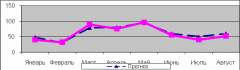 Рассмотрим график загрузки гостиницы на период с января 2009 года по август 2009 года (График № 2). Пунктирной линией обозначена прогнозируемая загрузка, рассчитанная службой отдела бронировании совместно с отделом маркетинга на основании данных о загрузках за прошлый год и информации о проведении запланированных мероприятий в городе. Сплошная линия показывает реальную загрузку гостиницы на этот период. График наглядно показывает на сколько точно можно рассчитать уровень загрузки, правильно используя имеющуюся информацию.