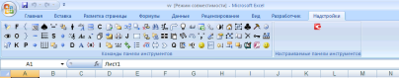 Все новые дополнительные пункты меню расположены в линейке меню в последовательности выполняемых действий. Называется новый дополнительный пункт главного меню "Надстройки"(см.рис.2.7).