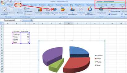 Для вставки диаграммы как показано на рисунке 2.6, сначала выделяется область данных, затем во Вкладке ВСТАВКА выбирается тип диаграммы, после этого активизируется Вкладка РАБОТА С ДИАГРАММАМИ.