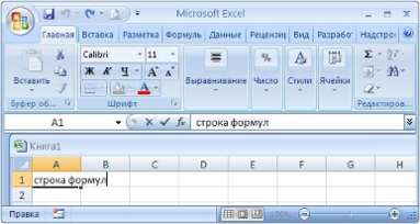 Главный элемент пользовательского интерфейса Microsoft Excel 2007 представляет собой ленту, которая идет вдоль верхней части окна каждого приложения, вместо традиционных меню и панелей инструментов. (рис. 2.2).