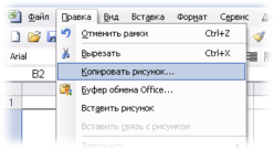 Перенесем первую фотографию из фотоальбома к выпадающему списку. Выделите ячейку с первой фотографией и, удерживая Shift, откройте меню Правка (рис.3.6). Там должен появиться невидимый ранее пункт Копировать рисунок: