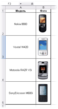 Создаем на Листе 1 мы каталог с фотографиями товаров, состоящий из двух столбцов (Модель и Фото) и шапки (рис. 3.3):